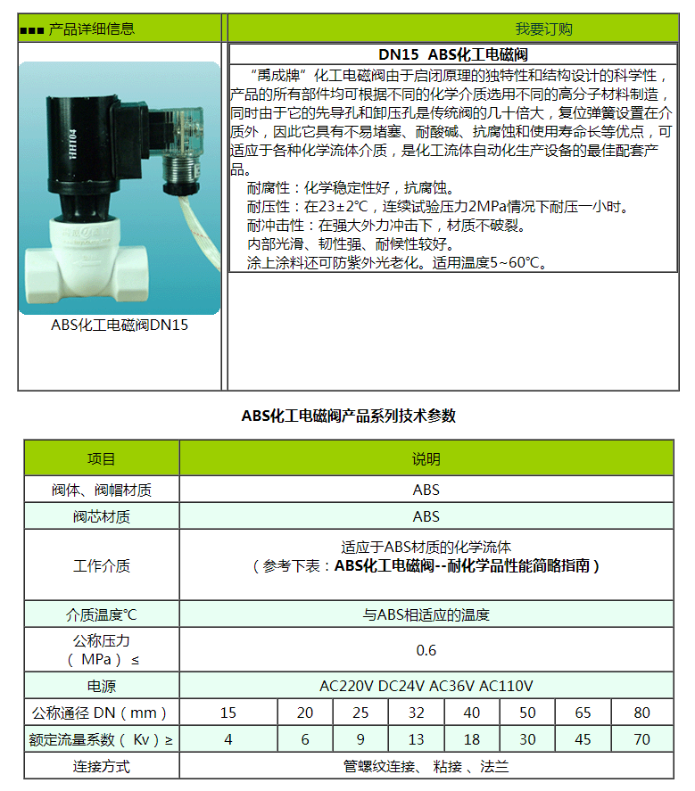 “禹成牌”化工電磁閥由于啟閉原理的獨特性和結構設計的科學性,產品的所有部件均可根據不同的化學介質選用不同的高分子材料制造,同時由于它的先導孔和卸壓孔是傳統閥的幾十倍大,復位彈簧設置在介質外,因此它具有不易堵塞、耐酸堿、抗腐蝕和使用壽命長等優點,可適應于各種化學流體介質,是化工流體自動化生產設備的最佳配套產品。