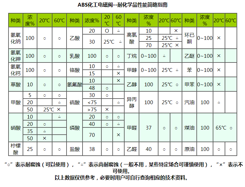 “禹成牌”化工電磁閥由于啟閉原理的獨特性和結構設計的科學性,產品的所有部件均可根據不同的化學介質選用不同的高分子材料制造,同時由于它的先導孔和卸壓孔是傳統閥的幾十倍大,復位彈簧設置在介質外,因此它具有不易堵塞、耐酸堿、抗腐蝕和使用壽命長等優點,可適應于各種化學流體介質,是化工流體自動化生產設備的最佳配套產品。