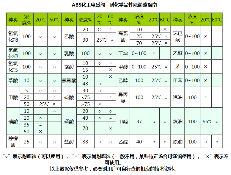 “禹成牌”化工電磁閥由于啟閉原理的獨特性和結構設計的科學性,產品的所有部件均可根據不同的化學介質選用不同的高分子材料制造,同時由于它的先導孔和卸壓孔是傳統閥的幾十倍大,復位彈簧設置在介質外,因此它具有不易堵塞、耐酸堿、抗腐蝕和使用壽命長等優點,可適應于各種化學流體介質,是化工流體自動化生產設備的最佳配套產品。