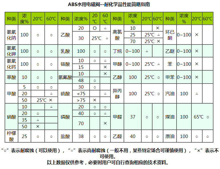 “禹成牌”水用電磁閥由于啟閉原理的獨特性和結構設計的科學性,產品的所有部件均可根據不同的化學介質選用不同的高分子材料制造,同時由于它的先導孔和卸壓孔是傳統閥的幾十倍大,復位彈簧設置在介質外,因此它具有不易堵塞、耐酸堿、抗腐蝕和使用壽命長等優點,可適應于各種化學流體介質,是化工流體自動化生產設備的最佳配套產品。