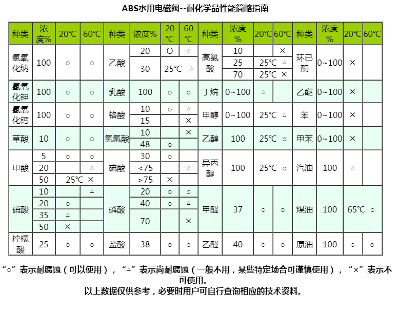 “禹成牌”水用電磁閥由于啟閉原理的獨特性和結構設計的科學性,產品的所有部件均可根據不同的化學介質選用不同的高分子材料制造,同時由于它的先導孔和卸壓孔是傳統閥的幾十倍大,復位彈簧設置在介質外,因此它具有不易堵塞、耐酸堿、抗腐蝕和使用壽命長等優點,可適應于各種化學流體介質,是化工流體自動化生產設備的最佳配套產品。
