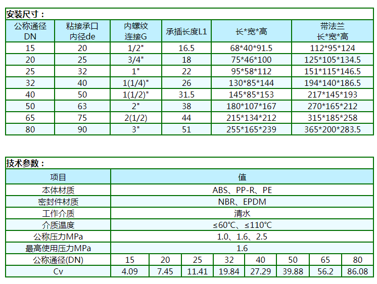 本產品民用系列選用國際通用型食品級工程塑料(ABS、PP-R、PE等)注造。工業用系列選用進口阻燃型高強度工程塑料(PC等)注造。產品具有重量輕、耐腐蝕、不生銹、不結垢、導冷不結霜、導熱系數低,絕緣性能好,環保衛生等優點。啟閉原理上:采用浮動閥芯,利用流體壓力差,誘導式啟閉的專利技術成果。因啟閉時無磨損(屬接觸型啟閉),而解決了傳統閥門因強制性啟閉而造成的啟閉部件和密封件磨損所引起的“跑、冒、滴、漏”的歷史性難題。它具有安裝使用方便,節能節水效果顯著(可節約傳統閥門的外泄內漏所浪費掉的水),使用壽命長及物美價廉等特點。
