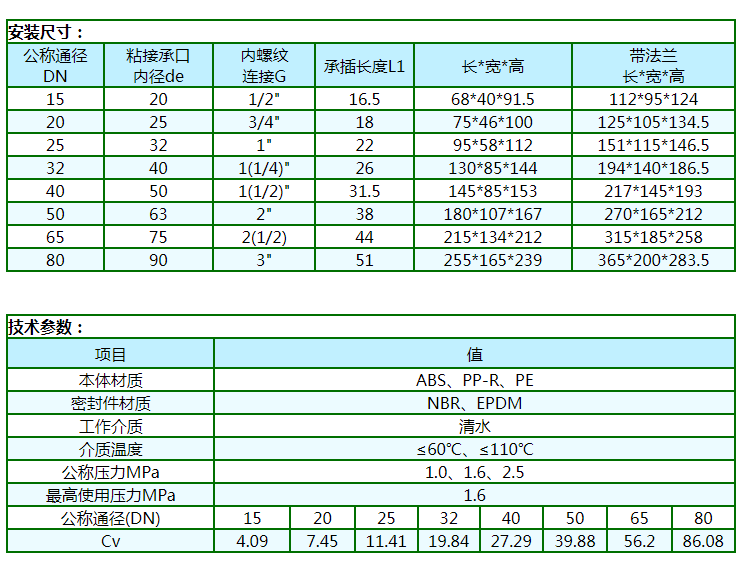 本產品民用系列選用國際通用型食品級工程塑料(ABS、PP-R、PE等)注造。工業用系列選用進口阻燃型高強度工程塑料(PC等)注造。產品具有重量輕、耐腐蝕、不生銹、不結垢、導冷不結霜、導熱系數低,絕緣性能好,環保衛生等優點。啟閉原理上:采用浮動閥芯,利用流體壓力差,誘導式啟閉的專利技術成果。因啟閉時無磨損(屬接觸型啟閉),而解決了傳統閥門因強制性啟閉而造成的啟閉部件和密封件磨損所引起的“跑、冒、滴、漏”的歷史性難題。它具有安裝使用方便,節能節水效果顯著(可節約傳統閥門的外泄內漏所浪費掉的水),使用壽命長及物美價廉等特點。