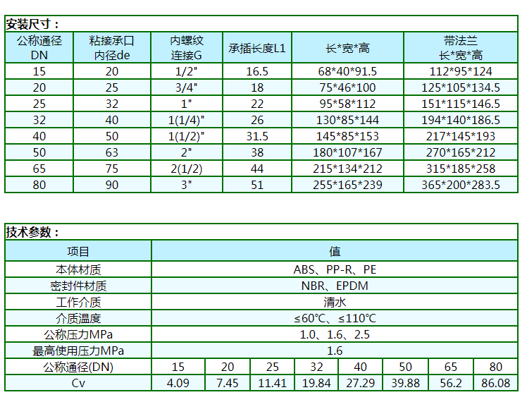本產品民用系列選用國際通用型食品級工程塑料(ABS、PP-R、PE等)注造。工業用系列選用進口阻燃型高強度工程塑料(PC等)注造。產品具有重量輕、耐腐蝕、不生銹、不結垢、導冷不結霜、導熱系數低,絕緣性能好,環保衛生等優點。啟閉原理上:采用浮動閥芯,利用流體壓力差,誘導式啟閉的專利技術成果。因啟閉時無磨損(屬接觸型啟閉),而解決了傳統閥門因強制性啟閉而造成的啟閉部件和密封件磨損所引起的“跑、冒、滴、漏”的歷史性難題。它具有安裝使用方便,節能節水效果顯著(可節約傳統閥門的外泄內漏所浪費掉的水),使用壽命長及物美價廉等特點。
