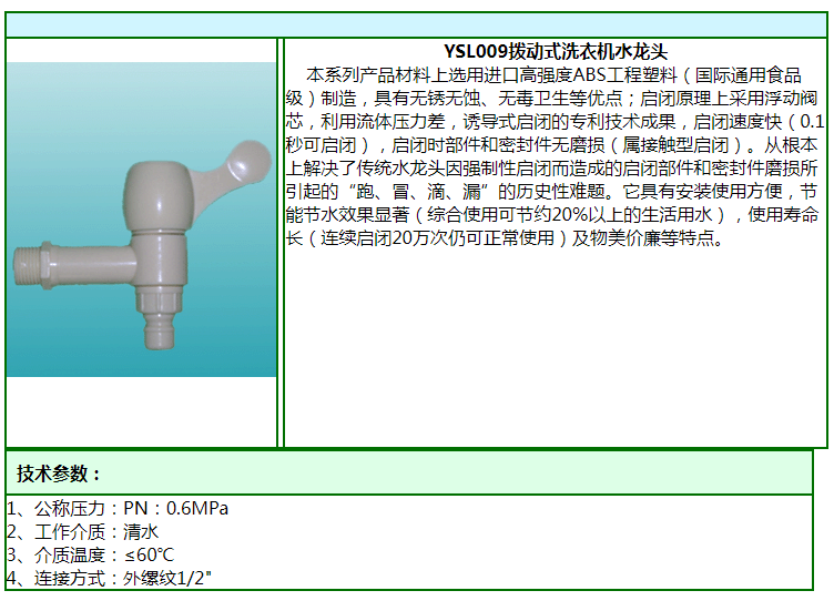 【產(chǎn)品型號】YSL009撥動(dòng)式洗衣機(jī)水龍頭